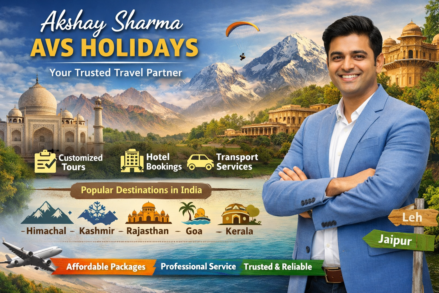 Akshay Sharma, connected with AVS Holidays, helps travelers explore travel opportunities and organize trips from Kirti Nagar.
